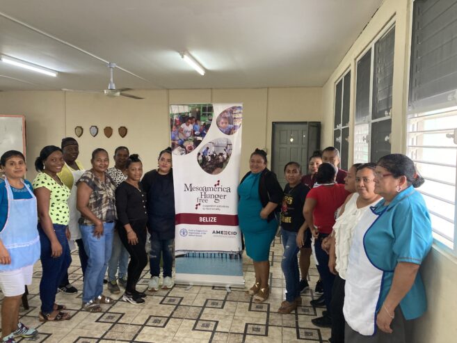 In an effort to strengthen the capacity of individuals involved in school feeding programs and promote healthy eating habits among school children, the Belizean component of the Mesoamerica Hunger-Free AMEXCID-FAO program conducted a series of training sessions. These included virtual sessions held on November 21st, 28th, and December 6th, and in-person cook training sessions on December 9th and 16th. The sessions brought together a diverse group of participants, including school principals, cooks, PTA members, school staff, and Ministry of Education personnel within the government feeding programs – National Healthy Start school feeding program (primary schools) and the Education Upliftment program (high schools).