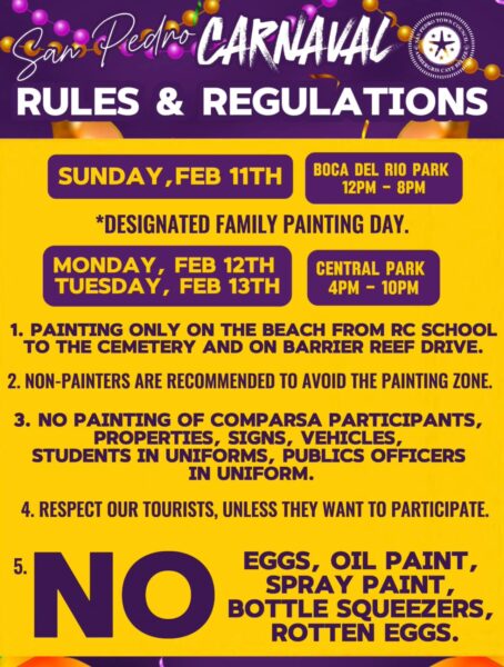 The anticipated traditional island celebration, El Carnaval de San Pedro, is taking place this weekend, starting on Saturday, February 10th, with a first-ever Carnaval Comparsa talent show at Central Park. The fun continues Sunday through Tuesday with paint and powder parties by the Boca del Rio Beach Park and downtown San Pedro. Of course, the famous comparsas (street dances) will take place on the main streets of downtown throughout the festive days between 4-10PM.