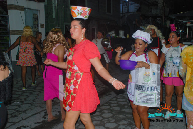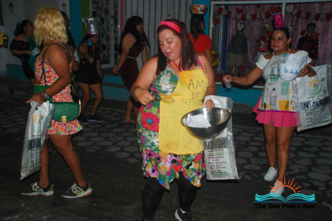 The Carnaval celebrations followed on Sunday, February 11th, with a family fun day titled “Carnaval En Familia” at Boca Del Rio Beach Park. Some activities included painting, exciting games, fun prizes, and a foam party. They also had live entertainment hosted by DJ Debbie and the Island Flame Band. Later in the night, two comparsa groups performed in the downtown streets of San Pedro. Flora Ancona and her group featured a performance called ‘Los Hippies,’ Franciso Mendez’s New Generation Comparsa group featured the Coquette aesthetic. This 2020s fashion trend was characterized by sweet, romantic, and sometimes playful elements.
