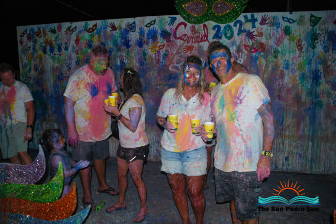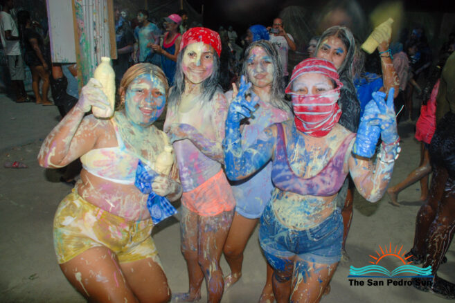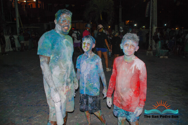 On Monday, February 12th, the carnival shenanigans started at 4PM with a paint and foam party at Central Park. Parents took their children to the park and the beach for a fun evening of music and painting. Every year, some tourists visit San Pedro during this festive season. They all enjoyed the painting and San Pedrano tradition.