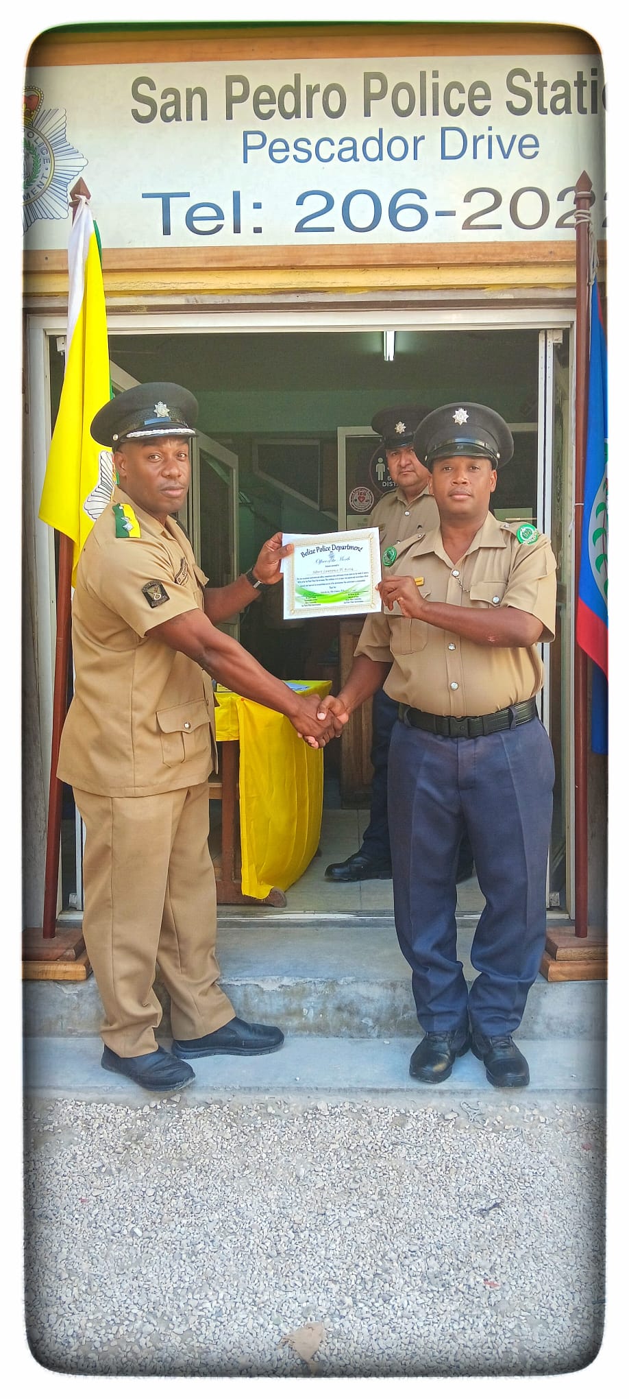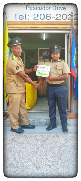 The awardees were treated to a short ceremony at 1:30PM in front of the police station. According to Inspector Serano, this is the first step in boosting morale and celebrating the tremendous work of all the officers serving in San Pedro Town. Serano shared that awards are based on the officer’s performance in the areas assigned within a particular month. “In the month of January 2024, some officers went above and beyond the call of duty,” said Serano. The well-deserved awards included certificates of recognition and letters of recommendation on behalf of the Regional Commander, Senior Superintendent Alejandro Cowo, and the Officer Commanding in San Pedro, Superintendent Egbert Castillo.