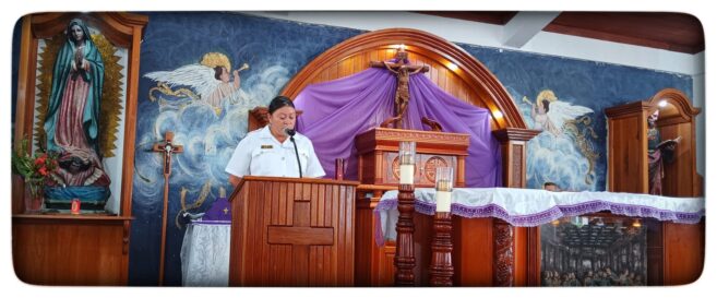 Father Eduardo Montemayor was pleased to host the officers. The church mass started at 8 AM, with Woman Police Constable Ariana Sanchez delivering the opening prayer. Father Montemayor then led the mass for the next hour and a half. At the end of the service, he recognized the San Pedro Police Formation and the young cadets. “Please know that you are deeply appreciated. We pray for and care for you. You are always welcome to come and worship with us,” Father Montemayor said. The mass ended with the protection prayer of St. Michael the Archangel.