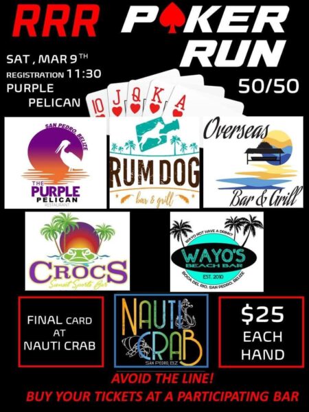 Organizers were very grateful to the San Pedro community and deemed the event successful. They noted the outstanding efforts of participating businesses hosting the poker run activity. The anticipated fundraiser started with registration at the Purple Pelican Restaurant in the Boca del Rio area at 11:30AM. From there, the rules of the games would take players to different participating establishments, including Overseas Bar and Grill, Wayo’s Beach Bar, Crocs Sunset Sports Bar, Rum Dog, and ending at Nauti Crab. There were drinks, delicious food, great music, and a poker game at each venue.