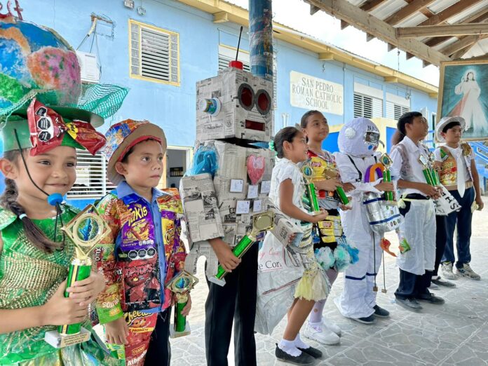 On Tuesday, April 30th, the San Pedro Roman Catholic School (SPRCS) celebrated the annual ‘Earth Day‘ under the theme ‘Planet vs. Plastic’ with a costume competition. The event started at the school’s compound at 10AM, and students were challenged to create wearable costumes using only recyclable materials. This competition was not just about creativity but about raising awareness of the detrimental effects of plastic on human and planetary health and advocating for its end.