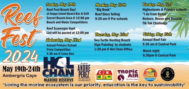 Hol Chan Marine Reserve’s Reef Fest is back! The 2024 edition will be celebrated from May 19th to May 24th, with the theme “Saving the marine ecosystem is a priority; education is key to sustainability.” Paris Kelly and Karisha Rubio, winners of last year’s slogan competition at San Pedro High School, suggested this year’s theme.