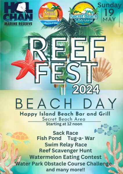 The events begin on Sunday, May 19th, with a Reef Fest Beach Day at the Happy Island Bar and Grill at Secret Beach, starting at noon. There will be a water competition and a reef scavenger hunt.