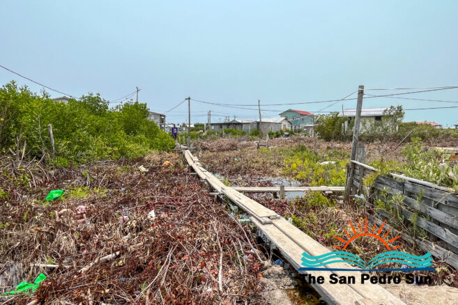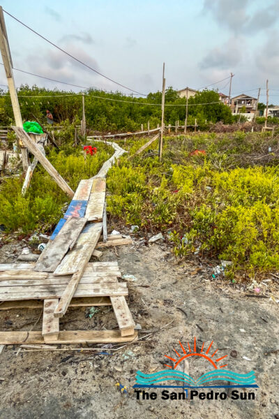 Bardalez was asked what could be done for the area to rebuild and improve proper road access for the people. An SPSUN reporter accompanied Bardalez on an area inspection on May 14, 2024, where they spoke to neighbors who shared their daily challenges in traveling to and from the sector. Some mentioned that their children have to use plastic bags on their feet to walk through the swamp, especially during the rainy season when the tide rises and causes flooding. Residents also mentioned that due to the lack of proper road access, Belize Water Services Limited and Belize Electricity Limited have been unable to install essential utilities in the neighborhood. As a result, some residents use candles at night or share electricity with neighbors using extension cords mounted on makeshift electrical posts made from old wooden sticks.
