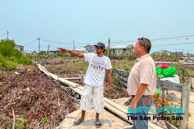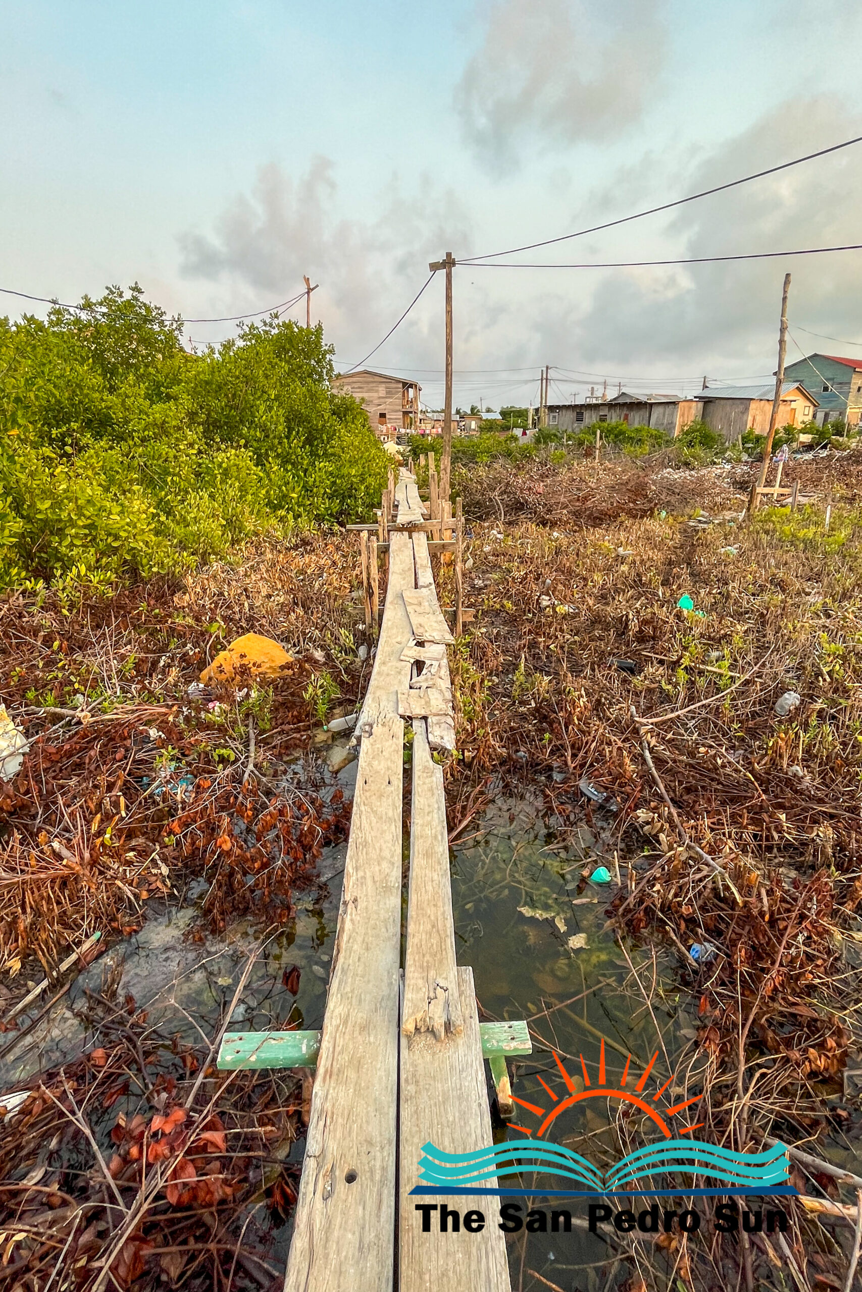 Bardalez was asked what could be done for the area to rebuild and improve proper road access for the people. An SPSUN reporter accompanied Bardalez on an area inspection on May 14, 2024, where they spoke to neighbors who shared their daily challenges in traveling to and from the sector. Some mentioned that their children have to use plastic bags on their feet to walk through the swamp, especially during the rainy season when the tide rises and causes flooding. Residents also mentioned that due to the lack of proper road access, Belize Water Services Limited and Belize Electricity Limited have been unable to install essential utilities in the neighborhood. As a result, some residents use candles at night or share electricity with neighbors using extension cords mounted on makeshift electrical posts made from old wooden sticks.