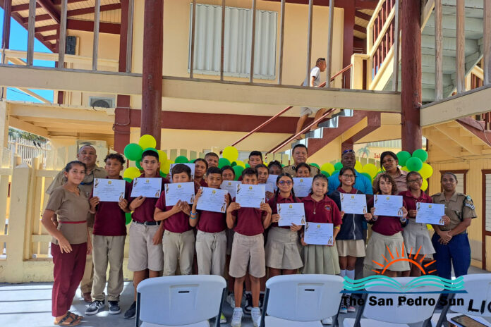 On Wednesday, June 5th, students in standard three through six at La Isla Bonita Elementary School completed a “Positive Engagement and Civic Education” project organized by the San Pedro Police Department and the Community Oriented Policing Unit. They were awarded for participating in the project, marking the end of their positive educational journey.