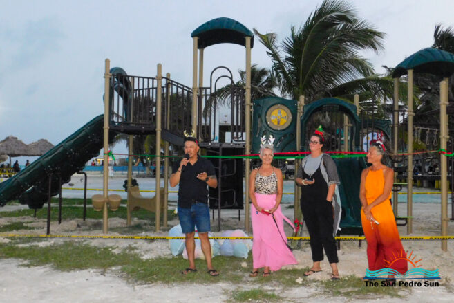 The fundraising program, led by Crocs Sunset Sports Bar’s Yener Ivan Luna and other supporters, dedicated months of work to this project. Luna expressed gratitude to every volunteer and sponsor who helped fundraise and coordinate the efforts to bring the playground to San Pedro. The San Pedro Town Council was also acknowledged for their assistance. The Christmas Collection group shared that while planning and fundraising for the playground and assisting some schools, Wisdom Playgrounds from North Carolina, USA, joined the efforts and generously donated the playground. The playground company, known as the number one playground equipment manufacturer in the USA, was represented by its president, Kim Haemker, who has been visiting San Pedro for over 20 years and has always wanted to carry out a playground project here.