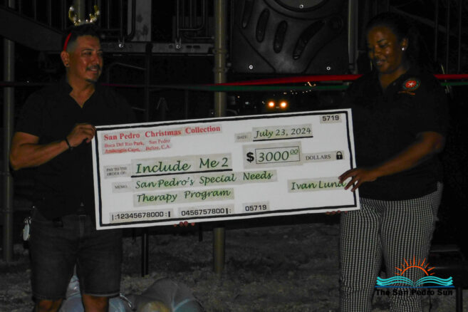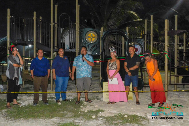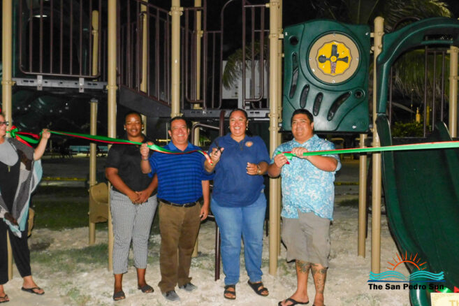 The dedication ceremony also involved the distribution of items to representatives of two pre-schools, followed by presenting a $3,000 check to the San Pedro Town Council’s Diani Aranda. The funds will benefit the organization Include Me 2, which provides therapy programs for children on the island affected by autism.