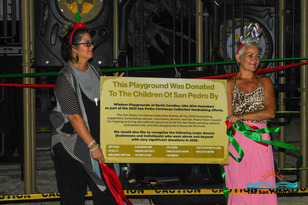 The fundraising program, led by Crocs Sunset Sports Bar’s Yener Ivan Luna and other supporters, dedicated months of work to this project. Luna expressed gratitude to every volunteer and sponsor who helped fundraise and coordinate the efforts to bring the playground to San Pedro. The San Pedro Town Council was also acknowledged for their assistance. The Christmas Collection group shared that while planning and fundraising for the playground and assisting some schools, Wisdom Playgrounds from North Carolina, USA, joined the efforts and generously donated the playground. The playground company, known as the number one playground equipment manufacturer in the USA, was represented by its president, Kim Haemker, who has been visiting San Pedro for over 20 years and has always wanted to carry out a playground project here.