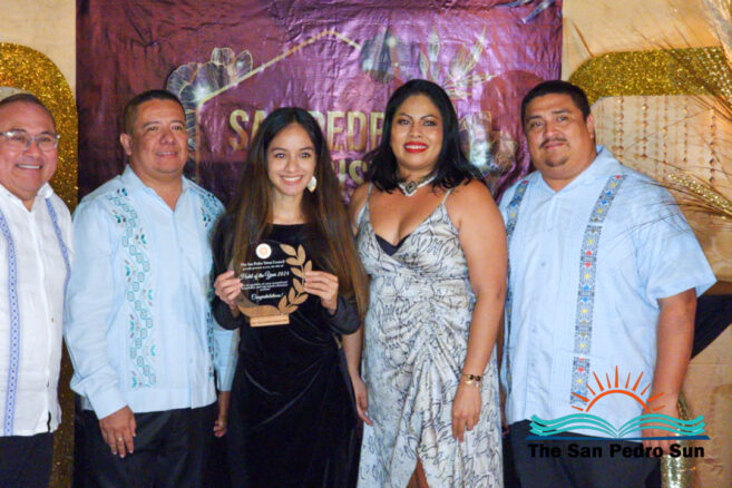 Furthermore, awards were presented to members of the San Pedro Town Council staff. Armin Badillo received the Male Employee of the Year award, despite his absence. Jaqueline Eiley was recognized as Female Employee of the Year, while Lorena Bardalez and Alex Eck received the Manager of the Year award.