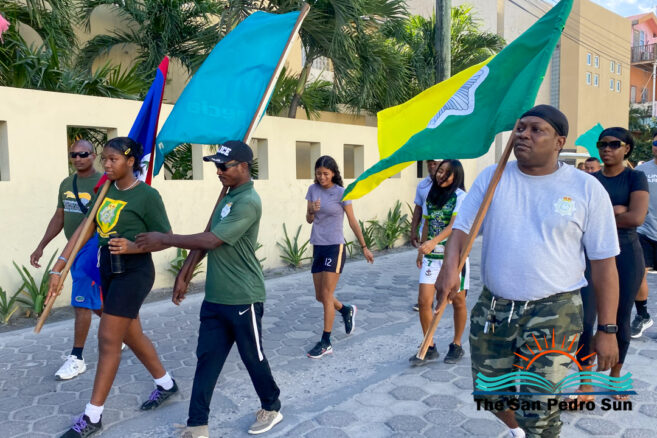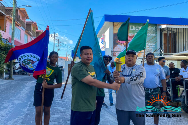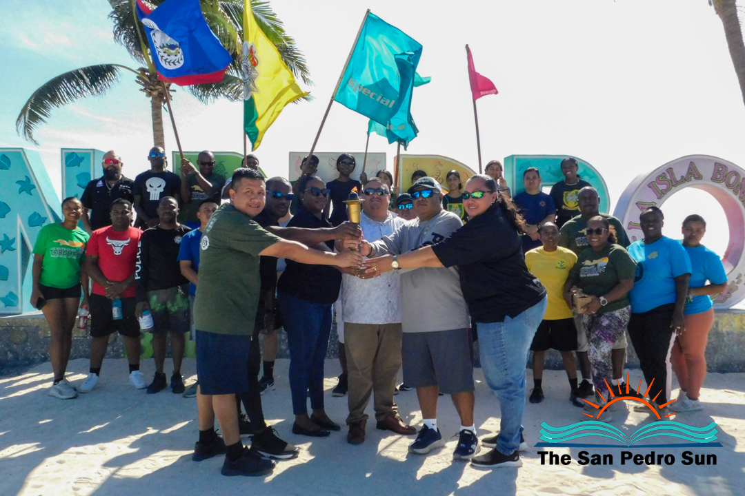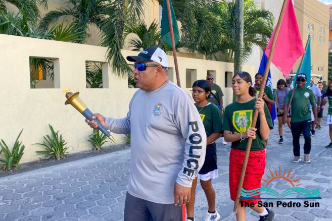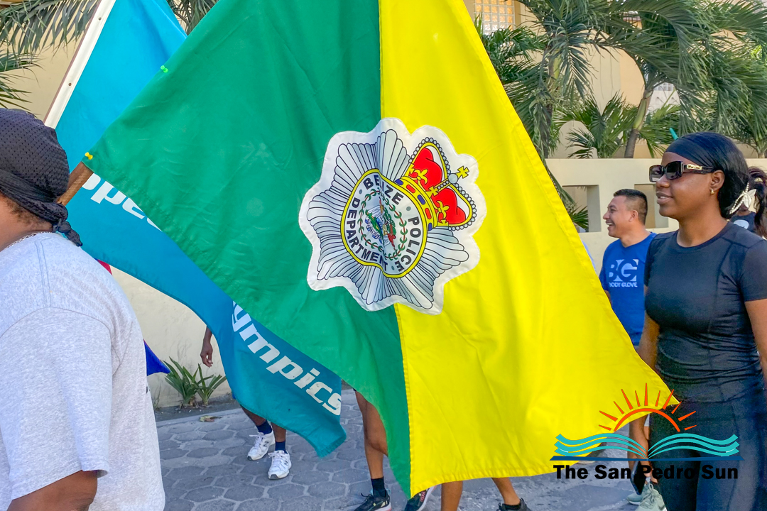 On Wednesday at 8:30 AM, the torch was paraded through the main streets of downtown San Pedro. Members of the police department, the San Pedro Town Council, and students from San Pedro High School participated in the event. Senior Superintendent Cowo led the run/walk along Pescador Drive, which then continued down Barrier Reef Drive, ending at Central Park. Mayor Gualberto ‘Wally’ Nuñez greeted the crowd and praised those involved in this annual initiative.