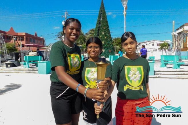 The torch was warmly welcomed on the island and presented to students, Councillors Dani Aranda and Johnnia Duarte. Later that day, Region Four Commander Senior Superintendent Alejandro Cowo, along with Inspector Darwin Serano and other San Pedro police officers, joined students and cadets at the central park. The torch was formally presented, and the evening’s activities concluded with a fundraising drive to support the Special Olympic Games.