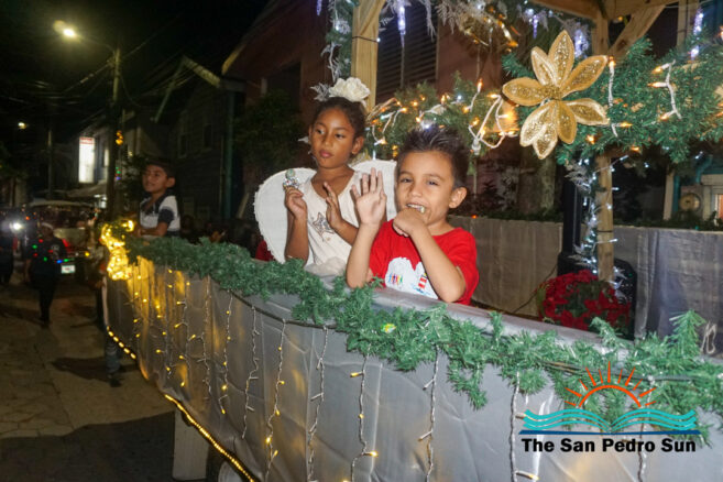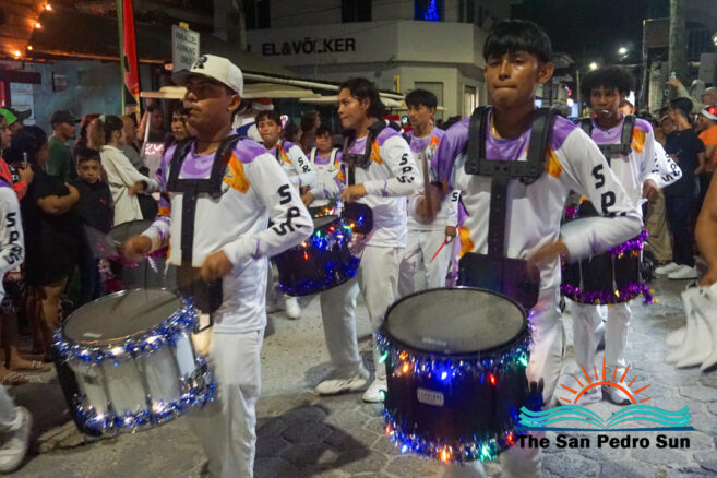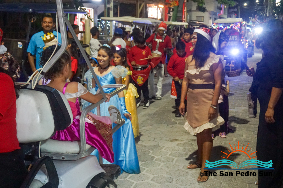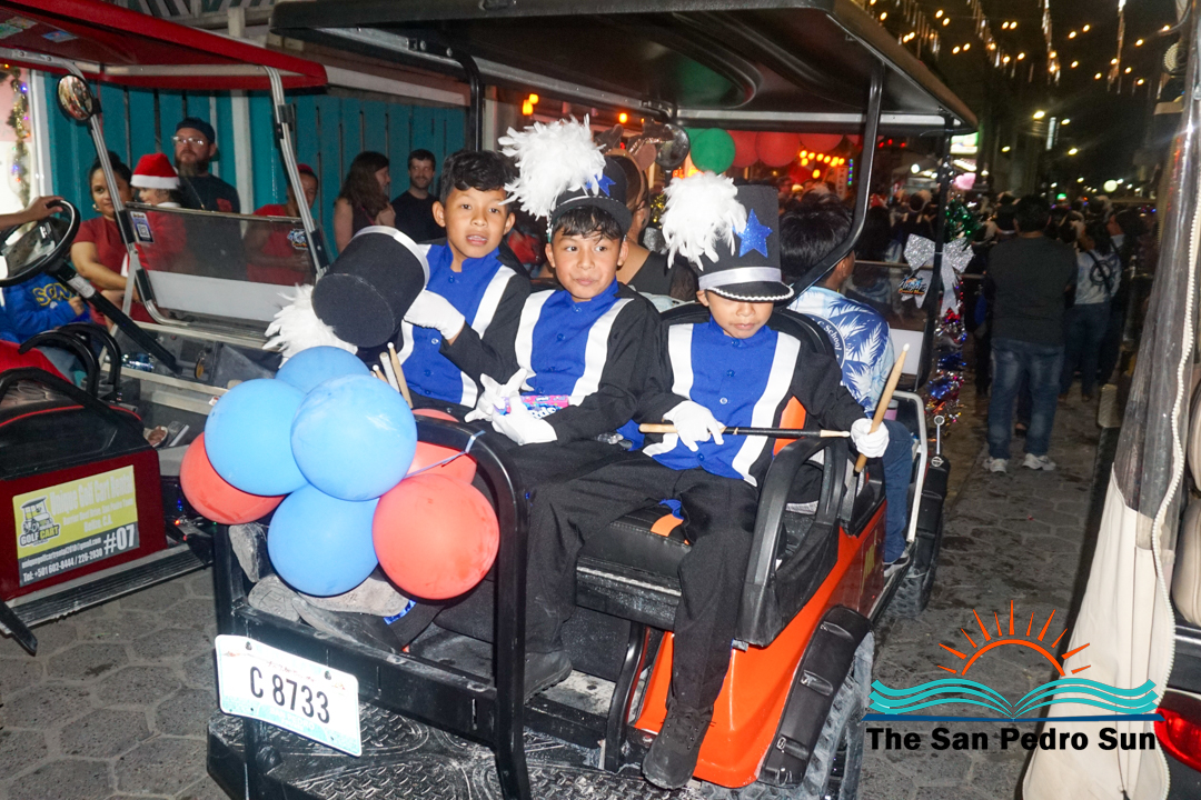 The parade began shortly after 6:30PM, starting from Boca Del Rio Park and winding through the streets of San Pedro. Participants included local businesses, schools, and community members, all showcasing beautifully decorated floats adorned with twinkling lights and festive motifs. The event featured various performances, including the San Pedro Roman Catholic marching band, the Belize Police Youth Cadet Corps, Sarah’s Drum Corps, and the San Pedro High marching band, all playing Christmas music. Children dressed in colorful costumes further added to the joyful ambiance.