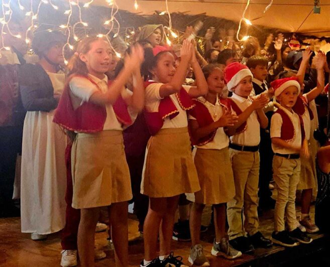 As the audience cheered following the performances, the entire student body, accompanied by the school’s founder, Lady Dixie Bowen, and the teachers, took the stage to sing the classic “Feliz Navidad.” Parents, friends, and other guests joined in, joyfully singing the popular Christmas song as the show ended.
