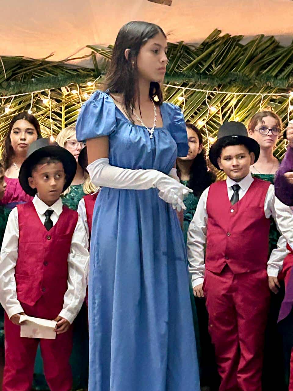 As the audience cheered following the performances, the entire student body, accompanied by the school’s founder, Lady Dixie Bowen, and the teachers, took the stage to sing the classic “Feliz Navidad.” Parents, friends, and other guests joined in, joyfully singing the popular Christmas song as the show ended.
