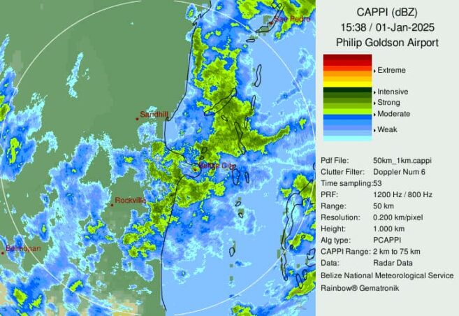 On January 1st, rainy conditions persisted across most parts of the country. The National Meteorological Service of Belize reported very wet and unstable weather for the coastline and Belize City. They indicated that showers and thunderstorms affected these areas. A strong thunderstorm watch warned of possible damaging winds, intense lightning, and heavy rainfall. Additionally, a small craft caution was issued.