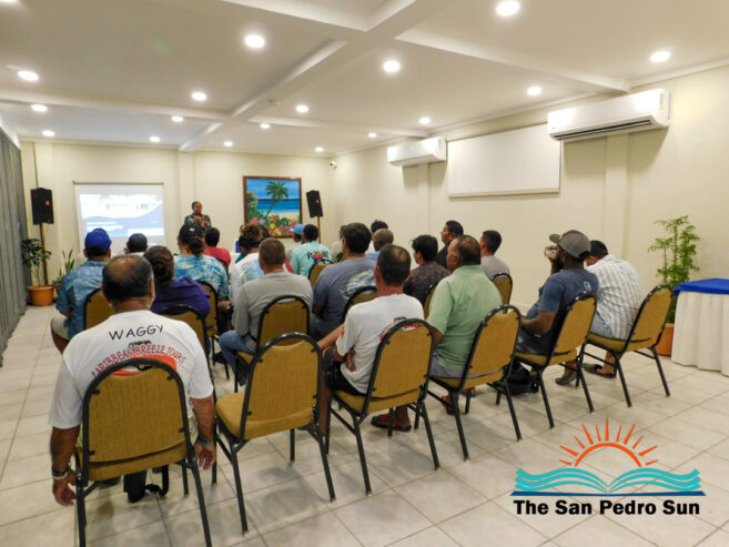 On Wednesday, April 9th, the Coastal Zone Management Authority and Institute (CZMAI) held a follow-up consultation session with stakeholders from the sport fishing industry in San Pedro. The meeting occurred at the Sunbreeze Hotel and focused on revising the Coastal Zone Management Act regarding sport fishing regulations. Participants engaged in the revision process and provided additional feedback on improvements that could be made to the management and laws governing the sector.
