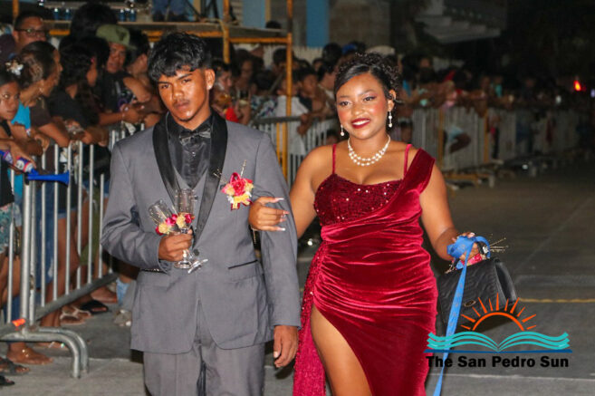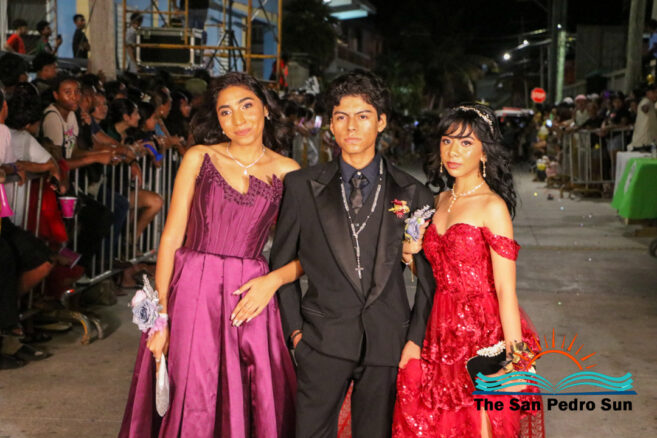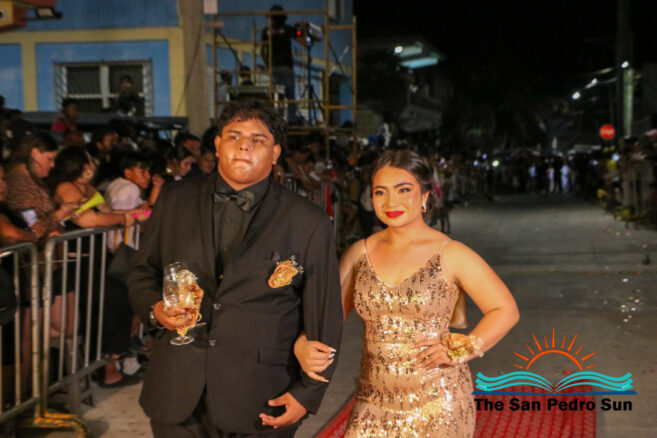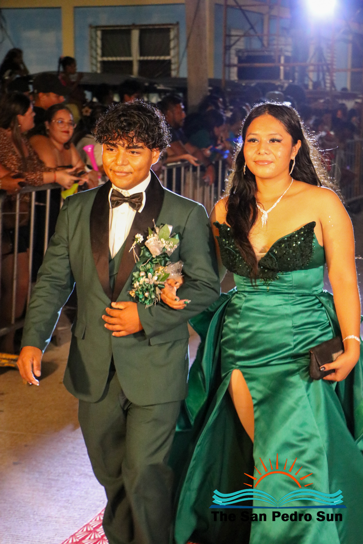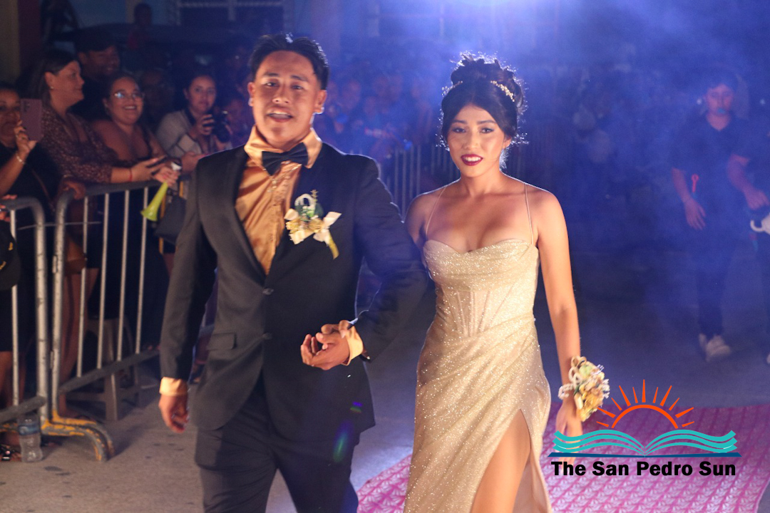 The evening was filled with excitement as students made grand entrances, some enhanced with choreographed routines, confetti, and even fireworks. Three judges, including Manuel Ancona, Faith Edgar, and Francisco Mende, evaluated participants on their outfits and entrances.