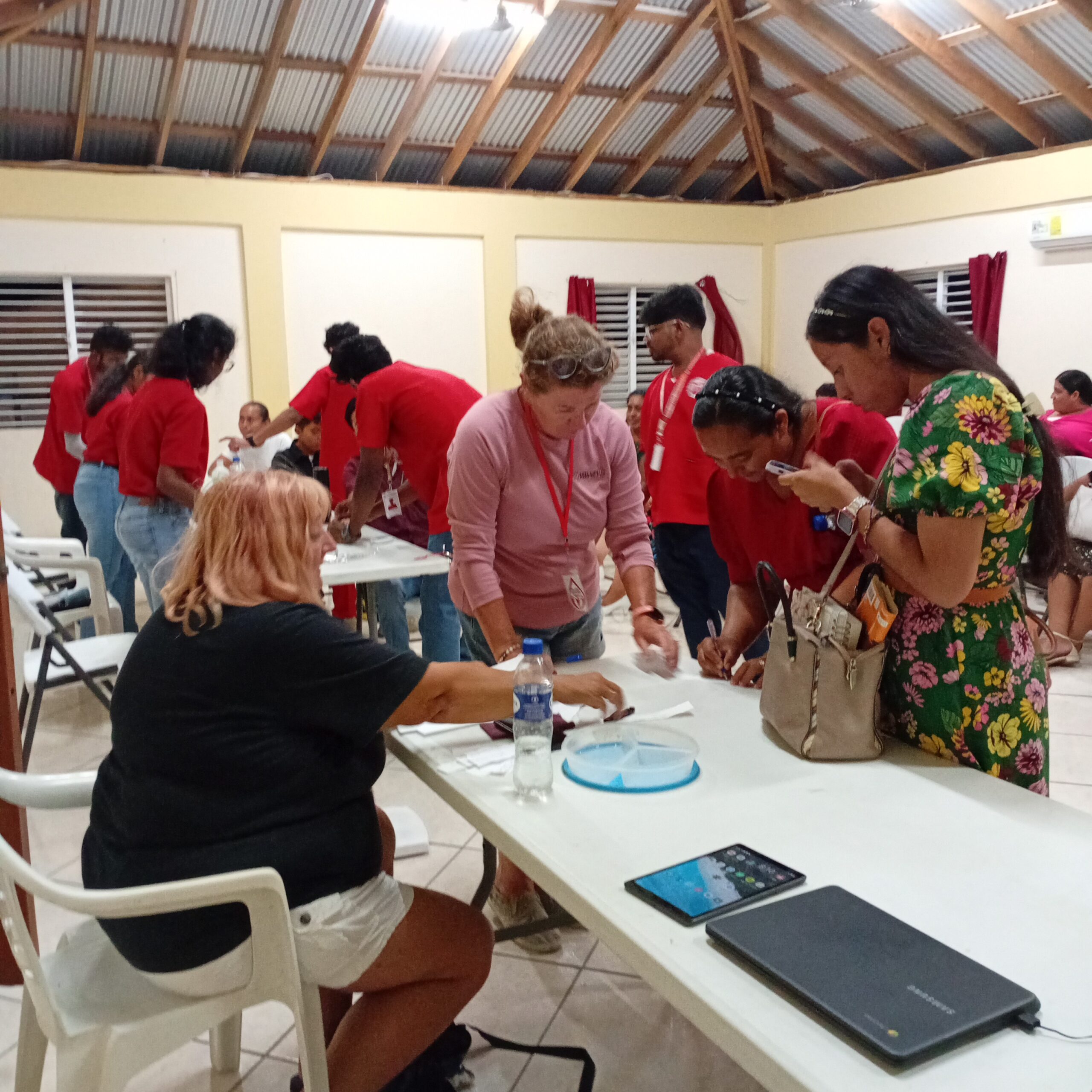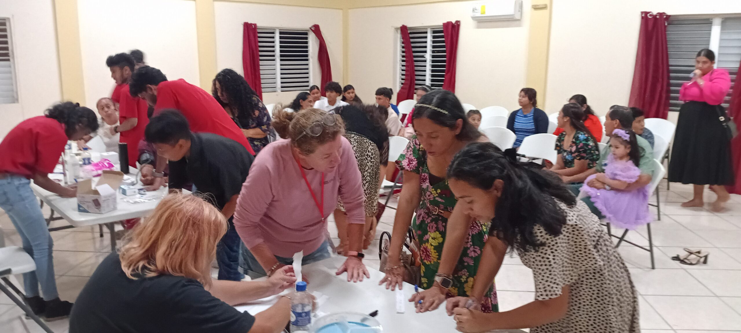 The large group voluntary donor registration event was a success. 20 church members registered as blood donors and 35 members got their vitals checked. All church members who registered to donate blood entered into a drawing to win one of 3 hemoglobin tests to assess their iron levels from Ambergris Hope Hospital (AHH). Congratulations to raffle winners Mary Orellana, Lizbeth, and Gimer Tillet, who each won a complimentary test by registering with IDS as a blood donor.