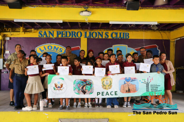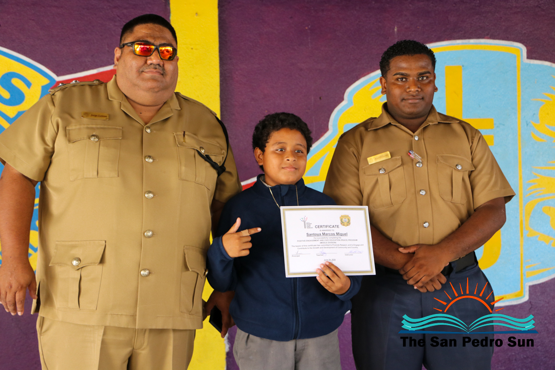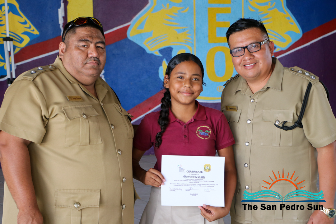 The San Pedro Police Department, in collaboration with the Ministry of Education, Science, and Technology (MoEST), hosted the Positive Engagement and Civic Education (PEACE) graduation ceremony on Monday, June 24th, at the Lions Den. Two hundred thirty-one students from Holy Cross Anglican School and Isla Bonita Elementary School received certificates for completing the PEACE program.