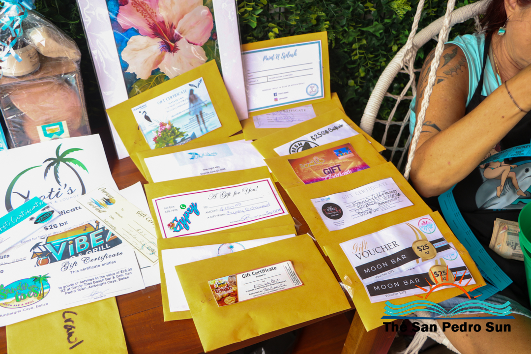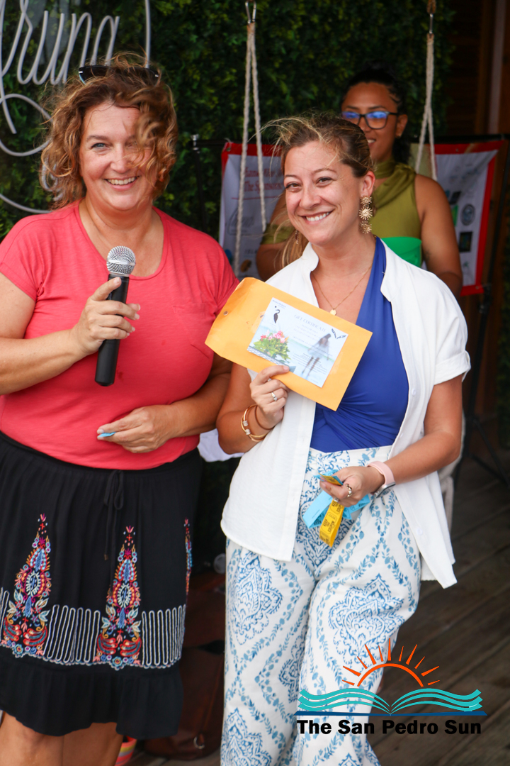 After enjoying food and drinks, the giveaways began, and raffle tickets were purchased for both prize drawings and the 50/50 cash raffle. Guests had the chance to win various prizes, including $50 gift certificates from Moon Bar, Frenchy’s Bakery, Level Up, Fresh Express, and The Alibi. Other notable prizes featured a hibiscus painting print by Ellie Guerrero Staines, an Original Guitar Circle rash guard, and a gift certificate for two at Paint N Splash. Larger prizes included $100 gift certificates from Opus Ocean Grille and El Fogon, as well as $150 gift certificates from Someplace South and Gypsy. There were also one-night stays at Aqua Vista and Playa de Sala, a sunset cruise for two aboard YOLO, a two-night stay at Aruna, and a $300 gift certificate to Akasha, adding to the evening’s excitement and generosity.