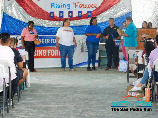 Guest speaker Mayor Gualberto “Wally” Nuñez delivered an uplifting address. “You are the future of our community and country,” he told the students. “Dream big and always work hard for your dreams.” He was later joined by Education Officer for Belize Rural South, Odalia Caliz, and Councillors Dianeli Aranda, Johnnia Duarte, and Marina Kay for giveaways.