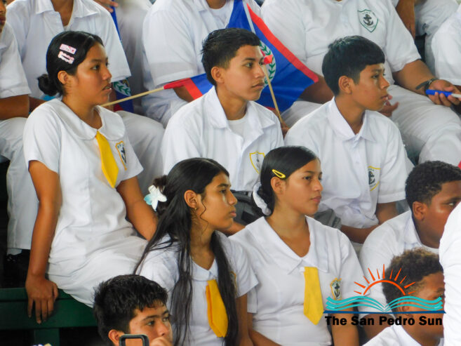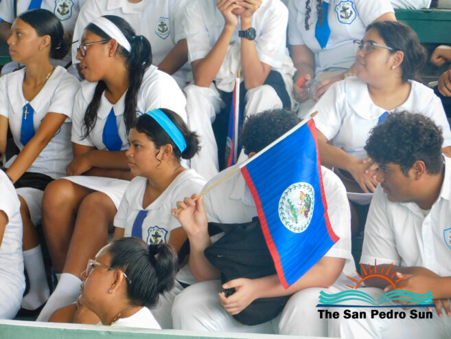 The rally wrapped up with more poem recitals, a cultural dance by San Pedro RC School students, and the presentation of an award from Education Officer Caliz to Mayor Nuñez. The gathering ended with everyone singing Happy Birthday to Belize. The SPHS marching band delivered a spirited finale before a student from Ambergris Caye Elementary gave the closing remarks.