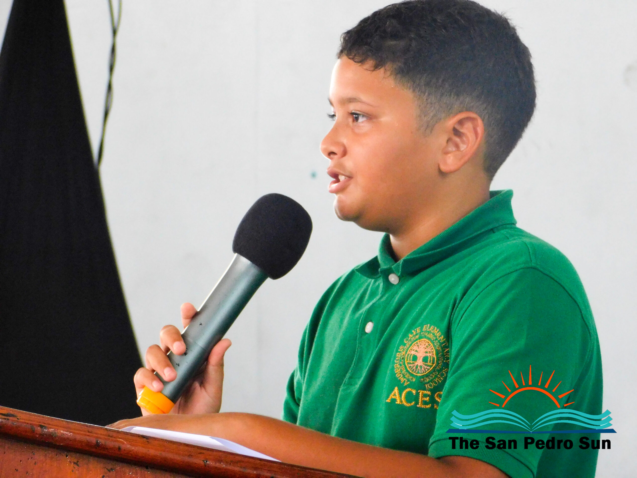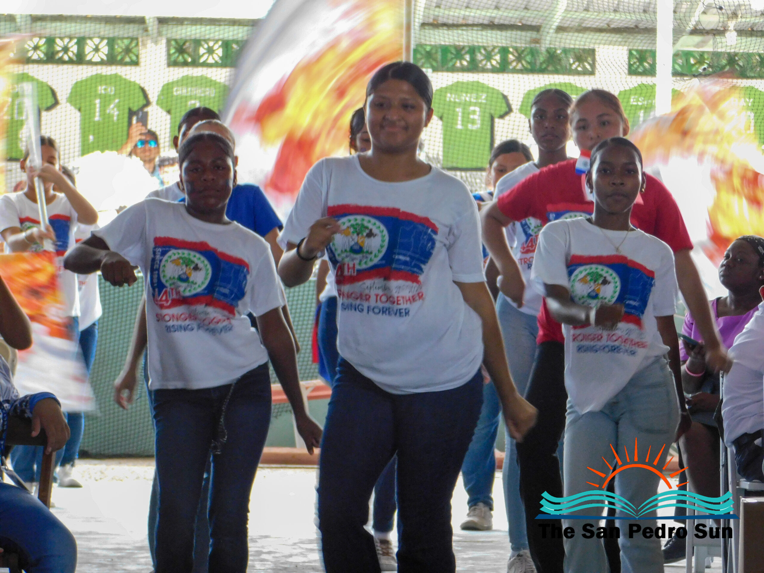 Holy Cross Anglican School paid tribute to the flag before students from The Island Academy delivered welcome remarks. The emcees then recognized the participating schools: Isla Bonita Elementary, Ambergris Caye Elementary, Holy Cross Anglican, New Horizon SDA, San Pedro RC, The Island Academy, and SPHS.