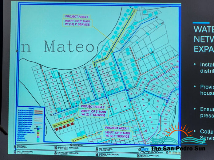 Central Executive Unit project engineer Falen Escalante presented details of the substantial urban development program, known as Project 1046, which focuses on improving San Mateo’s infrastructure connectivity and water access. The phase one budget totals $3.4 million BZD and includes street upgrades, construction of sidewalks, bike paths, and concrete pavement, as well as energy-efficient lighting and traffic signage. “We are doing design build… to shorten the process… to get infrastructure within San Mateo as soon as possible,” Escalante explained.