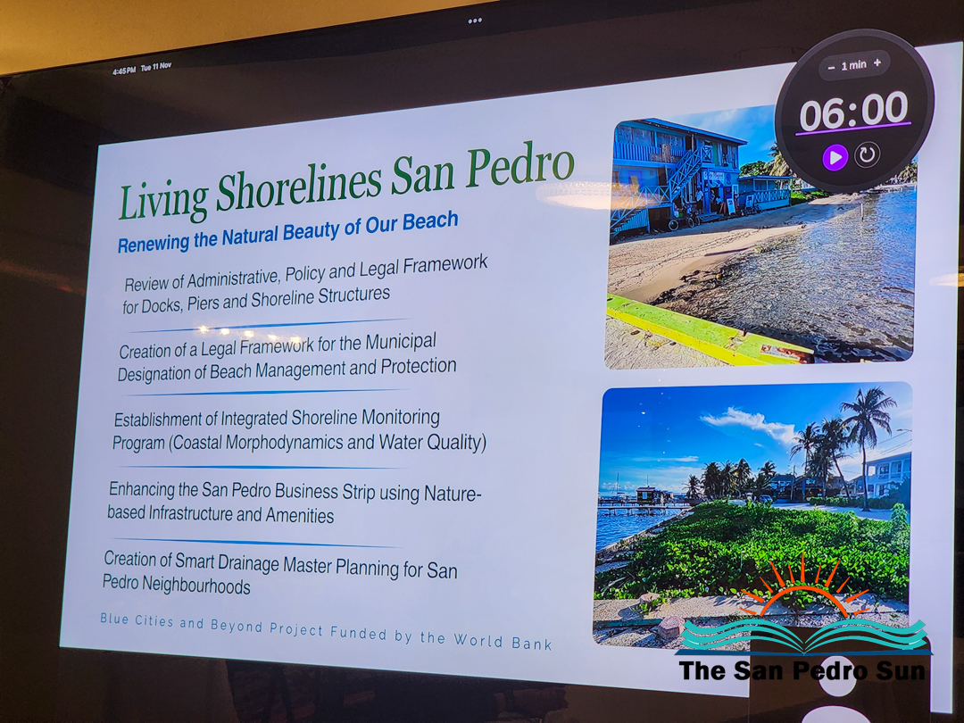 The session officially launched San Pedro’s Living Shorelines initiative, a science-driven, community-supported effort to protect the island’s coast through nature-based solutions and shared environmental responsibility.