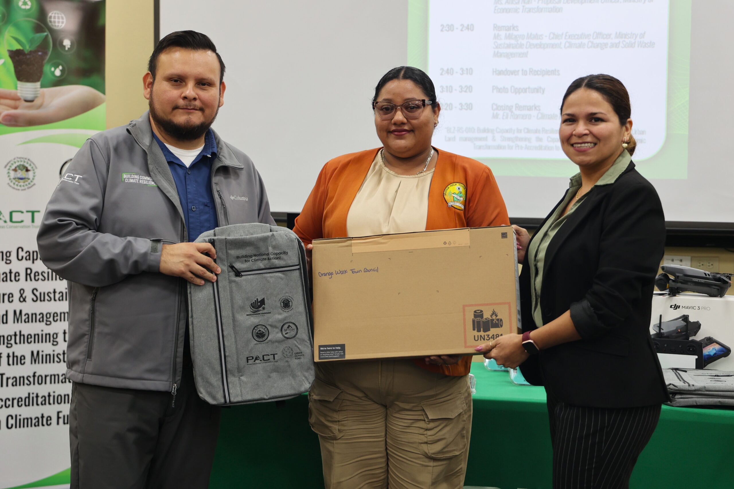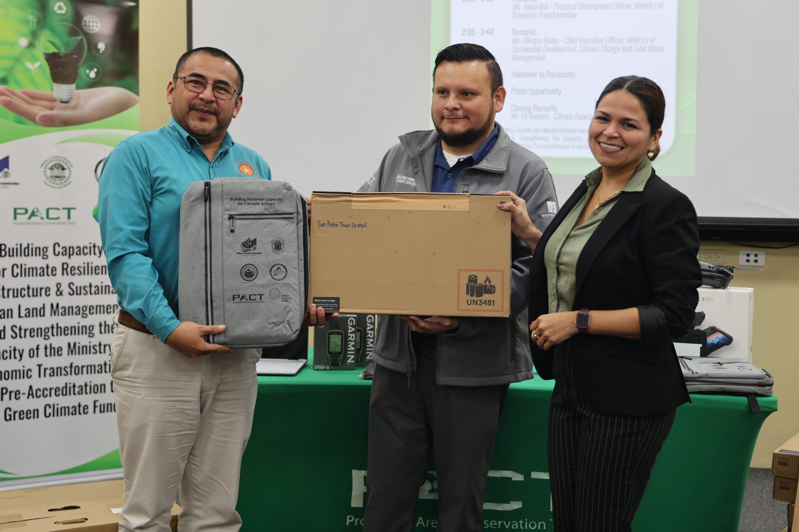 On November 11th, the Protected Areas Conservation Trust (PACT) officially handed over Information Technology (IT) equipment to all seven towns and two cities during a ceremony held at the Ministry of Sustainable Development Auditorium in Belmopan. Municipalities, including San Pedro, received laptops, monitors, mice, and licensed geographic information system (GIS) software to support improved urban planning and climate resilience efforts.