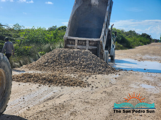 Crews are grading roads and filling potholes with reef rock, a material better suited to the northern terrain than white marl, thereby improving traffic flow amid high-season demands. Eck explained the methodical push. “We have started from right after Belizean Shores. We have already done multiple sections. For example, we did Blue Dolphin and then reached up to the junction of Secret Beach. Our team grades the roads first, then spreads the material, and after that, they use the rollers to compress and pack the reef rock down. We have 300 loads of material sourced from engineer Pancho, and we have already used 150 loads. The plan is to fix as far north as the Promised Land near Sapphire Beach, though more supplies and manpower are needed.”