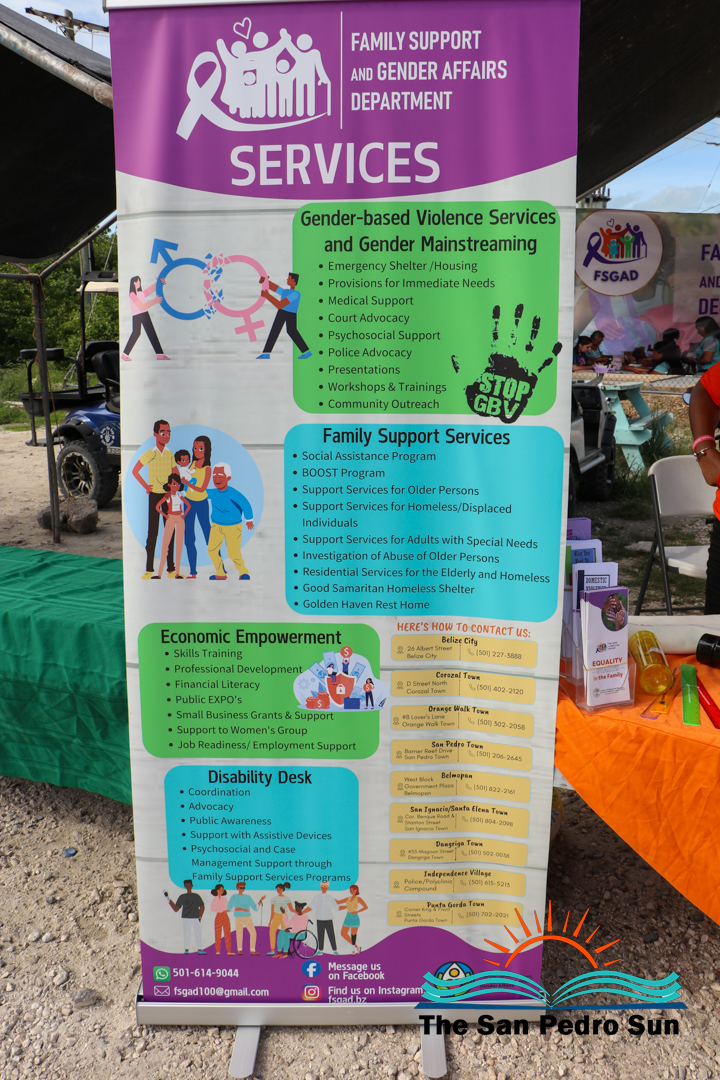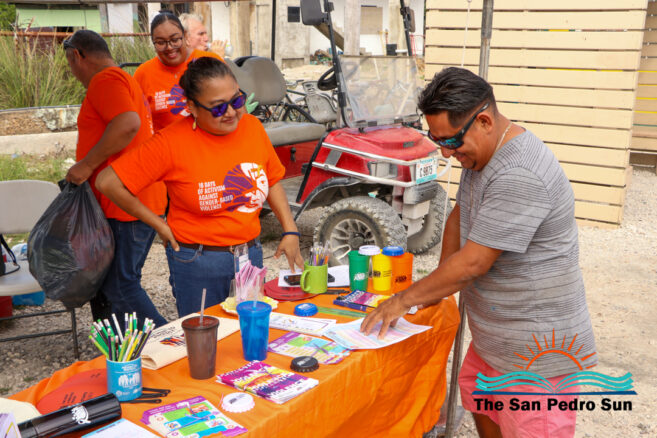 The San Mateo Community Outreach, a public information event aimed at connecting residents with support services during the 16 Days of Activism campaign, was held on Thursday, December 4th, at the Gas and Go compound at the entrance to the San Mateo area in San Pedro Town. Running from 9AM to 2PM, the activity brought together the Family Support and Gender Affairs Department, the Ministry of Health and Wellness community health workers, the San Pedro Community Police, and the Community Rehabilitation Department to share information on assistance available to island residents, particularly families, survivors of violence, and at-risk youth.