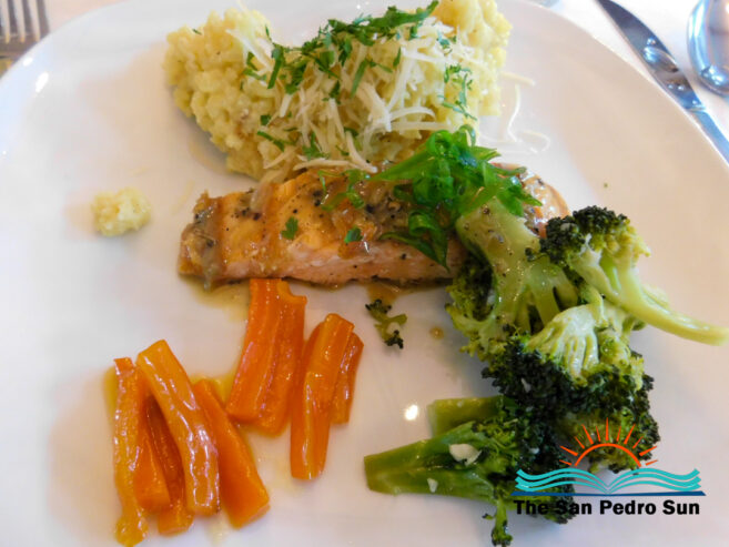 Holy Cross Anglican School priest, Kesner Ajax, delivered the opening prayer, after which the graduates served dinner. The menu included spicy pork wontons, grilled salmon with sabayon pepper sauce accompanied by risotto Milanese, glazed baby carrots, and sautéed broccoli, followed by a spicy pineapple salad. Dessert consisted of crème brûlée. Guests praised the meal’s quality and the students’ performance.