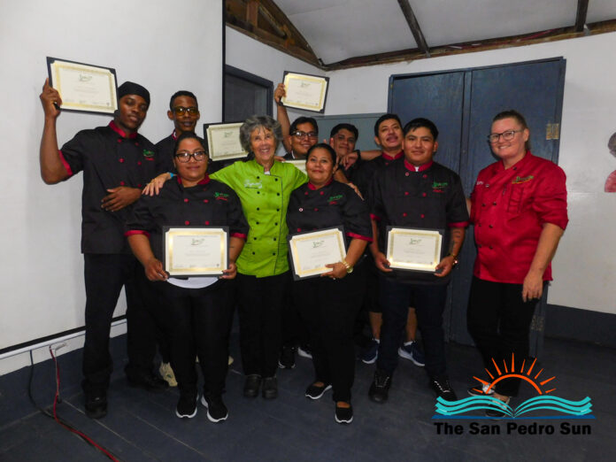 “I am very happy to share my expertise with Belizean cooks,” Grant said. Students completed their training in the school’s cafeteria kitchen, learning classical culinary methods as part of the curriculum.