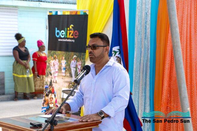 The ceremony included the national prayer led by Stephen Bowen, the national anthem performed by Chelsea Castro, welcome remarks by San Pedro Town Mayor Gualberto “Wally” Nuñez, and special addresses by Area Representative Hon. Andre Perez and Minister of Tourism Hon. Anthony Mahler. Closing remarks were delivered by Councilor Marina Kay, followed by the official ribbon-cutting and refreshments.
