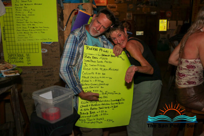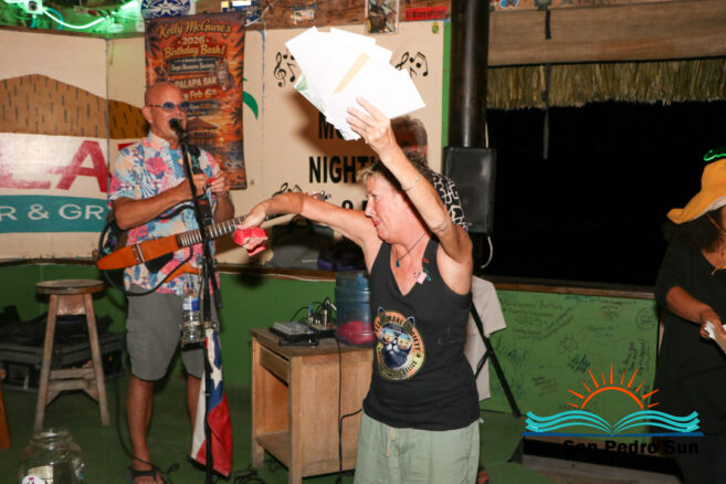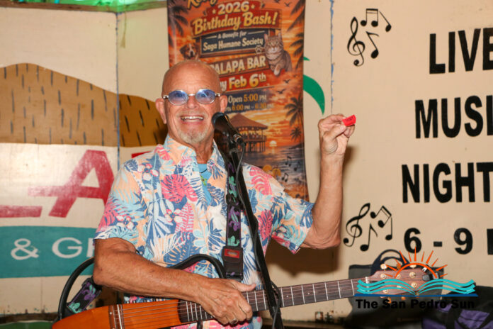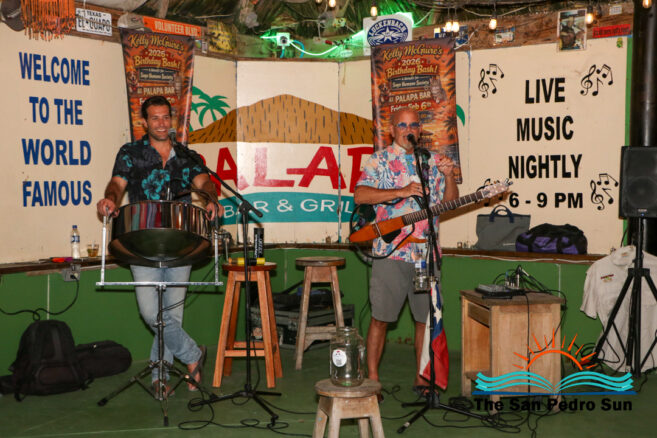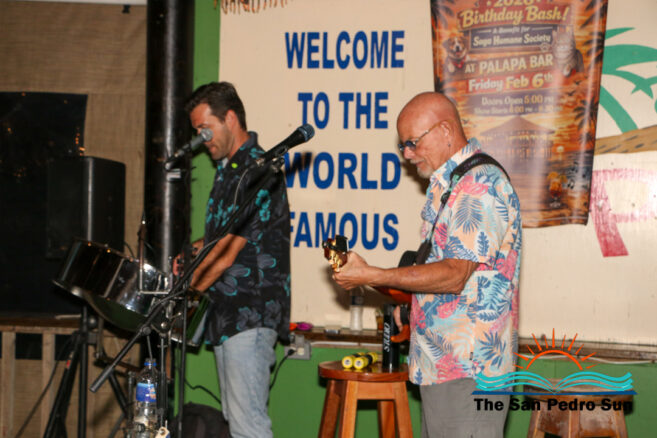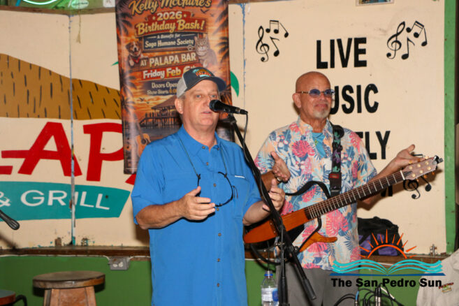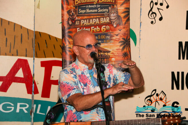 The annual Kelly McGuire Birthday SAGA Fundraiser lit up The Palapa Bar on Friday, February 6th. Singer-songwriter Kelly McGuire hosted the event, drawing a large crowd for live music, raffles, and community support for San Pedro’s only non-profit animal shelter and clinic, SAGA Humane Society. Steel drum player John Patty from Florida, USA, joined McGuire on stage, entertaining attendees with tunes that captured the island vibe.