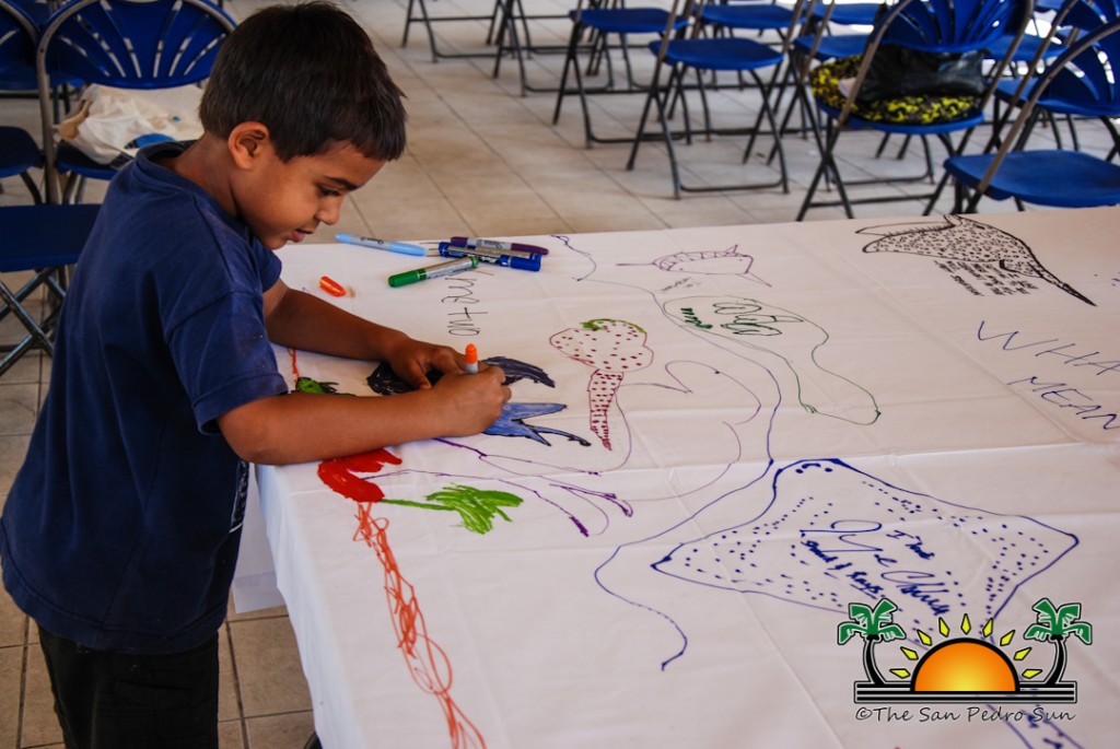 The art work was displayed for viewing and those that stopped by had the opportunity to participate in designing a banner by drawing and writing something about sharks and rays. Dr. Graham would like to take the opportunity to thank all those who participated in the Kids meet Sharks writing and arts completion. The San Pedro Sun congratulates all participants on a job well done.