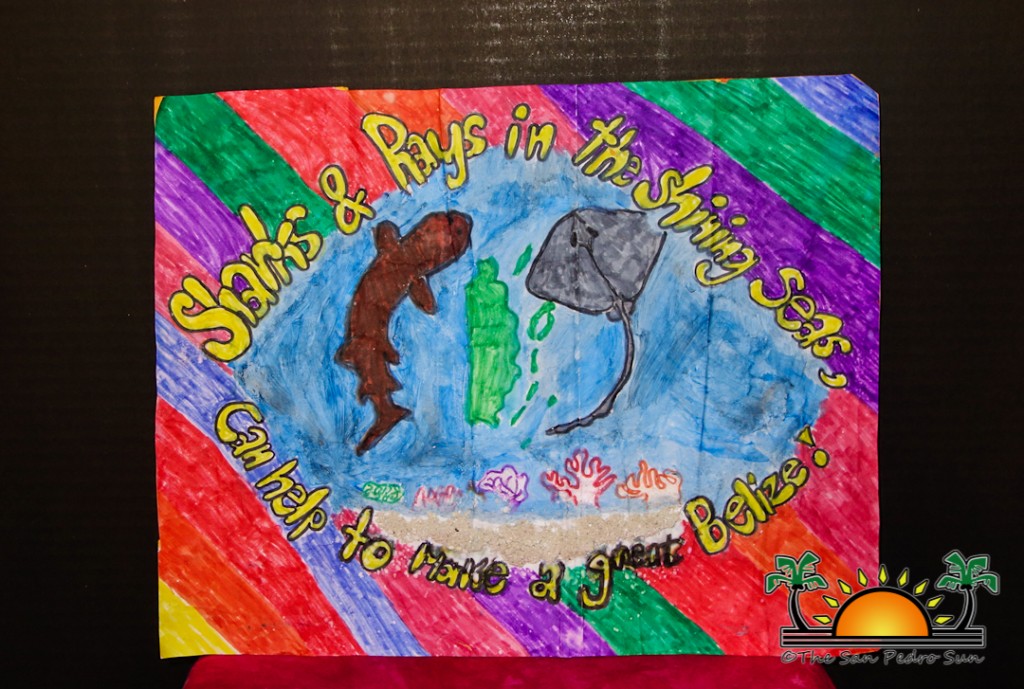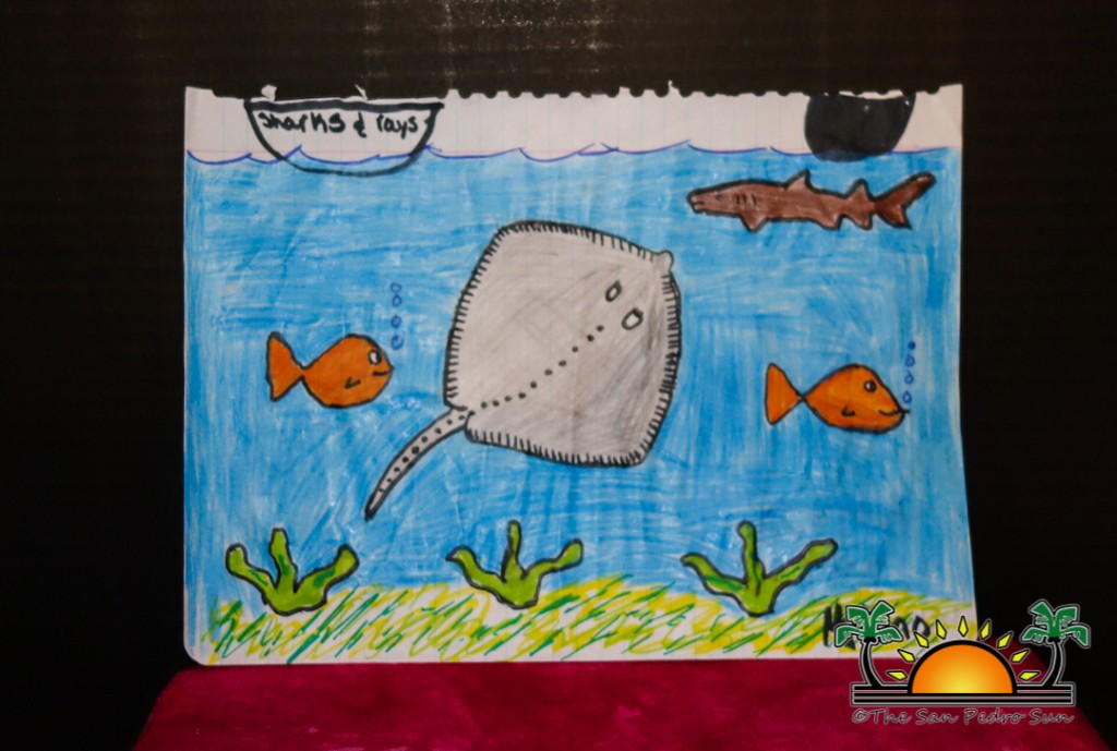 But the educational campaign bar was raised this year with the students that participated in the Kids Meets Shark program on Ambergris Caye. Each of the students had the opportunity to submit either an art piece or a writing based on their experience from the Kids Meet Sharks program. A total of 20 students from four different schools on Ambergris Caye submitted their entries.