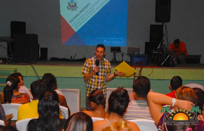 A small delegation from the Public Affairs section of the United States Embassy in Belize and personnel from the Institute of Archeology, met with students from the San Pedro Junior College on Wednesday, February 21st, to host a presentation on the upcoming renewal of the Memorandum of Understanding (MOU) between both countries addressing cultural protection and preservation. Hosting the presentation was Dr. Andrew Cohen, Senior Cultural Property Analyst, from the Bureau of Educational and Cultural Affairs at the U.S Department of State. He discussed the key points of the MOU, which aims to continue combating the looting of Belize’s archaeological sites and create awareness for the preservation of the country’s historical heritage for future generations.
