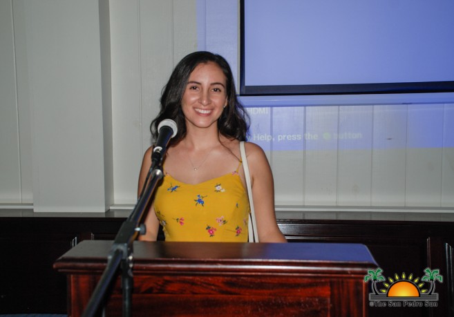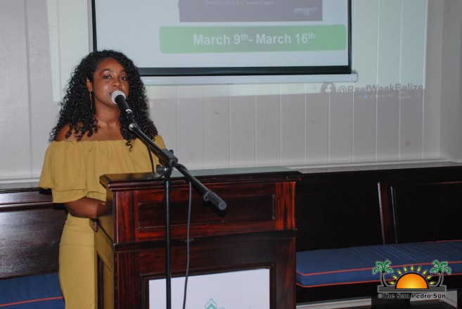 Projects Abroad, Kristin Marin then took the podium to share a few words.” Projects Abroad is an international volunteer organization that operates in almost 30 counties around the world. We have a very special project which is called Diving and Marine Conservation, where Projects Abroad trains a group of volunteers every week to go the Barrier Reef to collect scientific data. The data is then submitted to the Fisheries Department of Belize for them to determine fishing policies. Projects Abroad is happy to be a part of Oceana’s Reef Week,’ said Marin. She then shared tips with the attendees on how they can join the movement of conservation despite their occupation in society, such as going straw-less or using bamboo straws, reducing the use of plastic bags, Styron foam products, and non-biodegradable items.