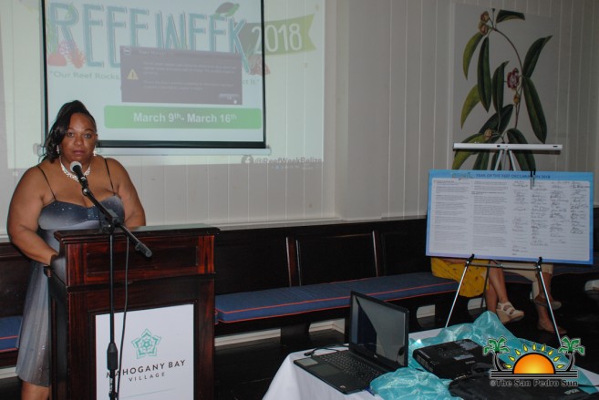 The event began promptly at 8PM, with Mistress of Ceremony, Justine Nicholas, welcoming everyone and giving a summary of what Oceana’s Reef Week is all about. “This year we launch our Reef Week under the team ‘Our Reef Rocks, Protect it, Don’t Neglect it.’ This year, Reef Week is very special to us as we celebrate the international year of the reef and a lot of victories accomplished in Belize, such as passing the law of no Petroleum Operations (Offshore Zone Moratorium) which placed an indefinite moratorium on offshore oil exploration in Belize’s marine territory. Reef Week is when local ‘reef-minded’ organizations come together to celebrate Belize’s national resource through a week-long celebration,” said Nicholas. She also mentioned that for Oceana’s Reef Week 2018, over 55 different activities will be taking place across the country.