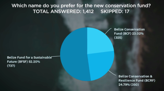 Voting opened on January 28th and closed on February 11th. The online portal for voting was via email and social media. There was a total of 1,412 votes cast. The Belize Conservation Fund received 325 votes or 23% of support. The Belize Conservation and Resilience Fund had 350 votes equal to 24.7%. The winning name, Belize Fund for a Sustainable Future, received 737 votes totaling 52%. This name focuses on the fund’s role to secure a future for all Belizeans through sustainable development.