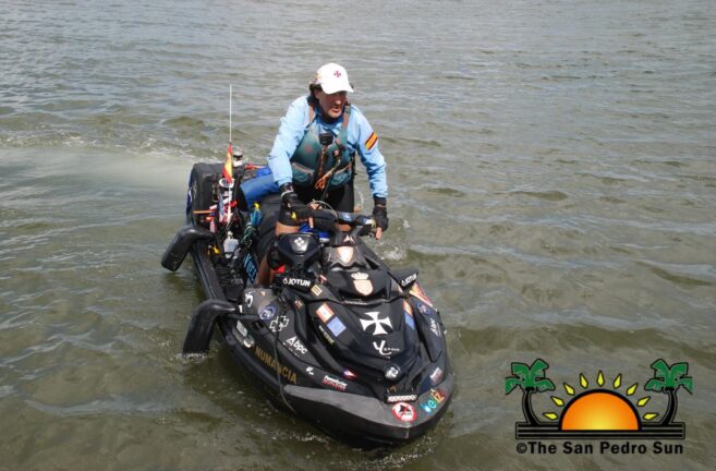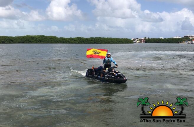 The 62-year-old explorer crossed the Atlantic Ocean in a modified nine-foot-long Jet Ski called Numancia, which he prefers as the Trans-Atlantic small vessel. After Monaco and Gibraltar, he visited the Lesser and Greater Antilles in the Caribbean before arriving in Miami, Florida, USA. The Spanish navigator was stuck in Florida for quite some time due to the COVID-19 pandemic. When he continued his journey, he travelled along the Gulf of Mexico until he arrived in Quintana Roo. Alvaro’s next move was heading south to Belize, where he arrived in San Pedro around midday on Friday. He cheerfully embraced the Belizean flag and was overjoyed to be in Belize.