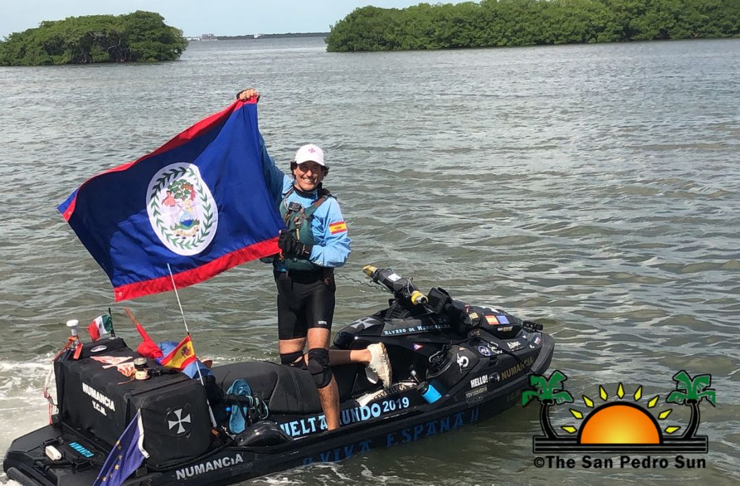 The 62-year-old explorer crossed the Atlantic Ocean in a modified nine-foot-long Jet Ski called Numancia, which he prefers as the Trans-Atlantic small vessel. After Monaco and Gibraltar, he visited the Lesser and Greater Antilles in the Caribbean before arriving in Miami, Florida, USA. The Spanish navigator was stuck in Florida for quite some time due to the COVID-19 pandemic. When he continued his journey, he travelled along the Gulf of Mexico until he arrived in Quintana Roo. Alvaro’s next move was heading south to Belize, where he arrived in San Pedro around midday on Friday. He cheerfully embraced the Belizean flag and was overjoyed to be in Belize.