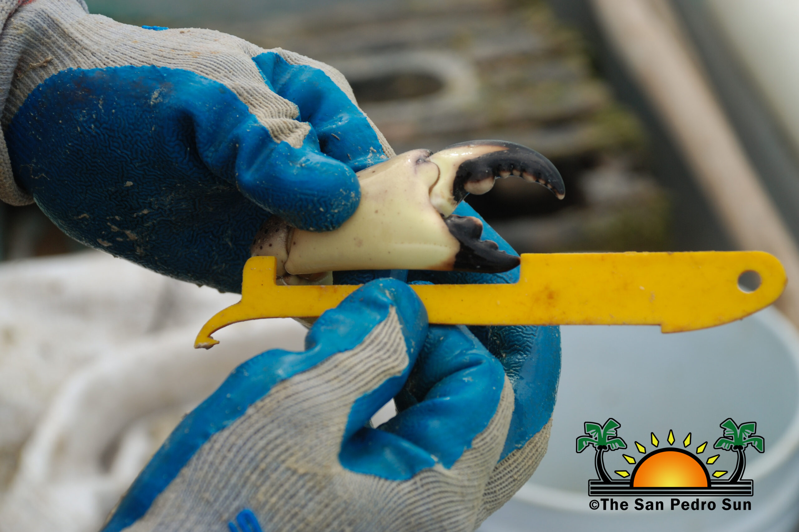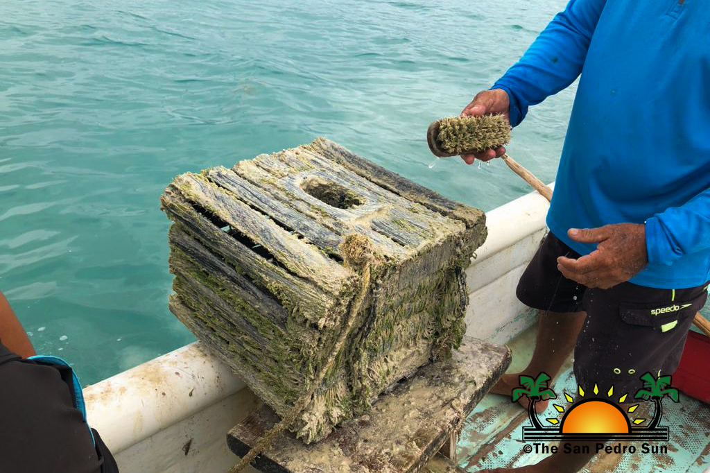 Chan and his helper start scrubbing off the algae, and after opening the trap, voila! There were a few stone crabs inside with huge claws. Chan measures the claws to ensure they are the correct size. It is illegal to harvest claws less than three inches long. Chan explained that violating this law can result in a BZ$1,000 fine and/or six months in prison. The Fisheries Department corroborated this, adding that licensed crab fishers will lose their license after a second offense.