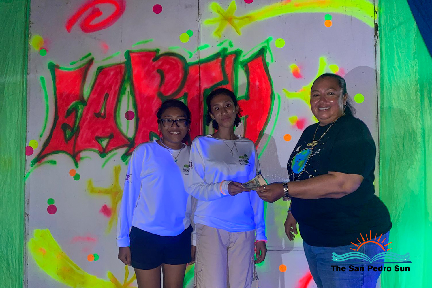Afterward, the winners of the street chalk competition were declared. In third place and taking $50 was Team UB Environmental Club. In second place was Team JIA Warriors, winning $100. In first place and taking home $150, was Team DEA Warriors. The event continued with neon lights, dances, and more live music. The Earth Day-themed activities continued the following day with a clean-up along the Secret Beach Road north of San Pedro Town.